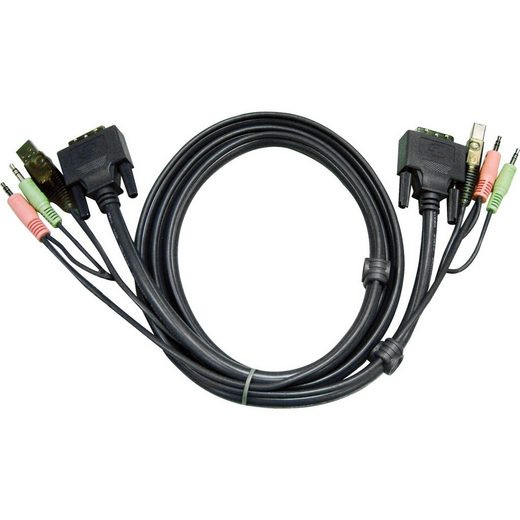 - این کابل دارای کانکتورهای DVI-I (تک لینک)، USB و صدا در هر دو سمت است
