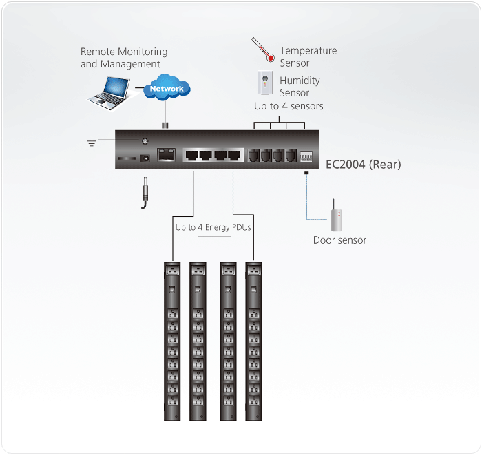 - کاربرد: تجهیزی برای مانیتورینگ و مدیریت توان الکتریکی و شرایط محیطی در رکها و مراکز داده (data center / server rack)؛ این دستگاه به سنسورهای توان، دما، رطوبت و اختلاف فشار متصل شده و دادهها را به صورت real-time (زمان واقعی) و از راه دور گزارش میدهد