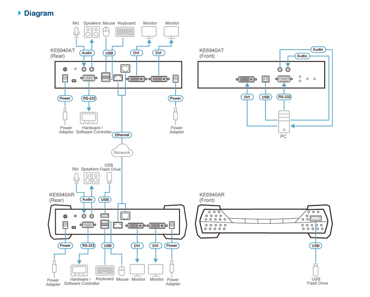 - مدل: KE6940AT — فرستنده (Transmitter) سری KE6940A برای KVM over IP