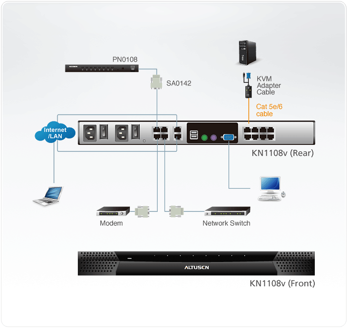 نوع: KVM over IP — دسترسی محلی و از راه دور به کنسول دستگاهها تعداد پورتها: 8 پورت KVM (اتصالات RJ-45) حالت دسترسی همزمان: 1 کنسول محلی + 1 کاربر راه دور وضوح ویدئو پشتیبانی شده: تا 1920 × 1200 @ 60 Hz برای جلسات محلی و راه دور