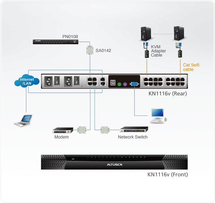 نوع: KVM over IP — امکان دسترسی محلی و از راه دور به کنسول دستگاهها