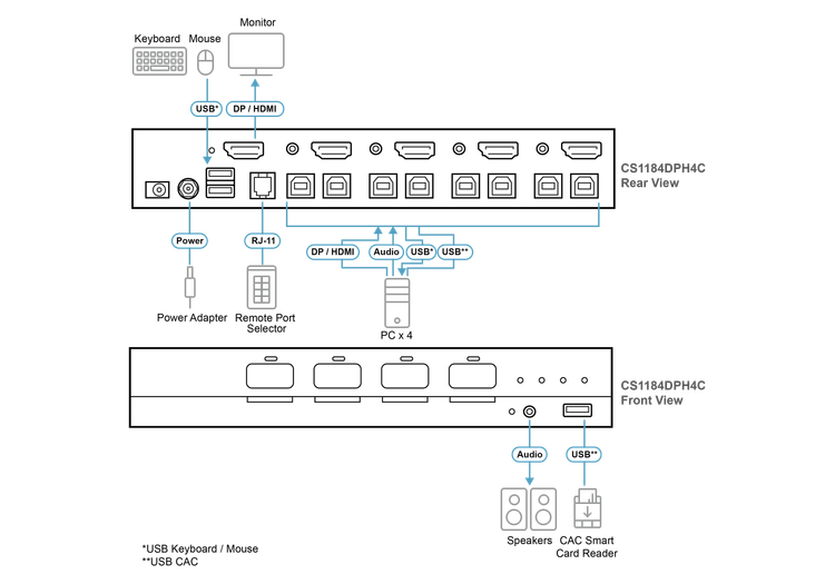 قابلیت سوئیچ پورت از طریق دکمههای فیزیکی (Pushbuttons) یا کنترل از راه دور (Remote Port Selector) برای امنیت و سهولت بیشتر.