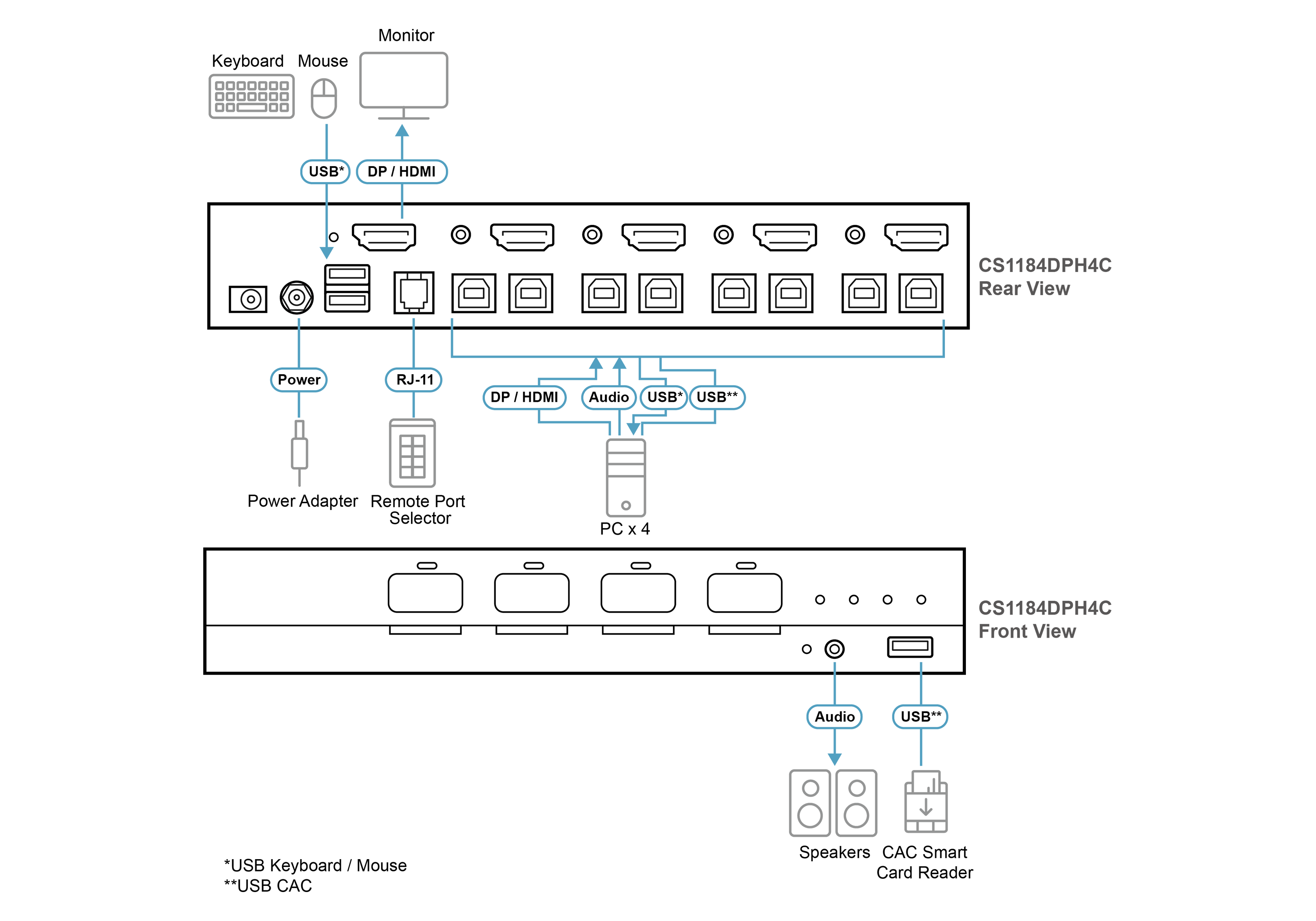 قابلیت سوئیچ پورت از طریق دکمههای فیزیکی (Pushbuttons) یا کنترل از راه دور (Remote Port Selector) برای امنیت و سهولت بیشتر.