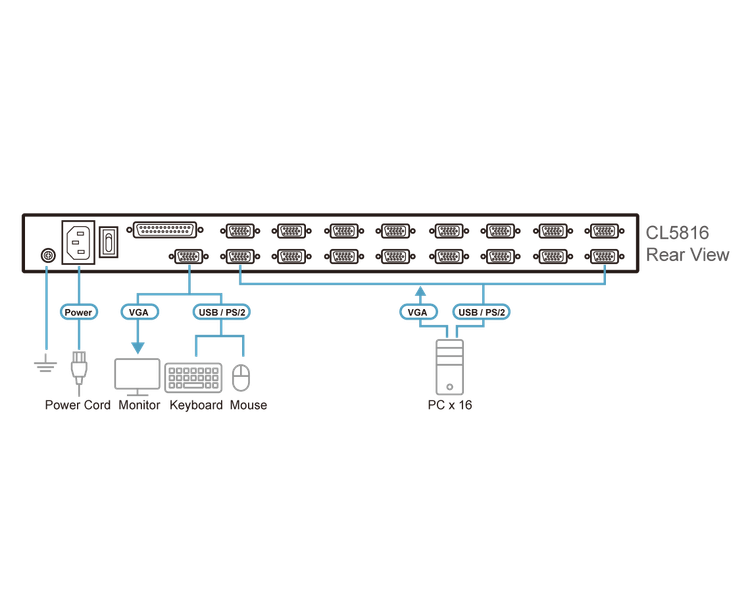 پشتیبانی از ۱۶ پورت PS/2-USB VGA