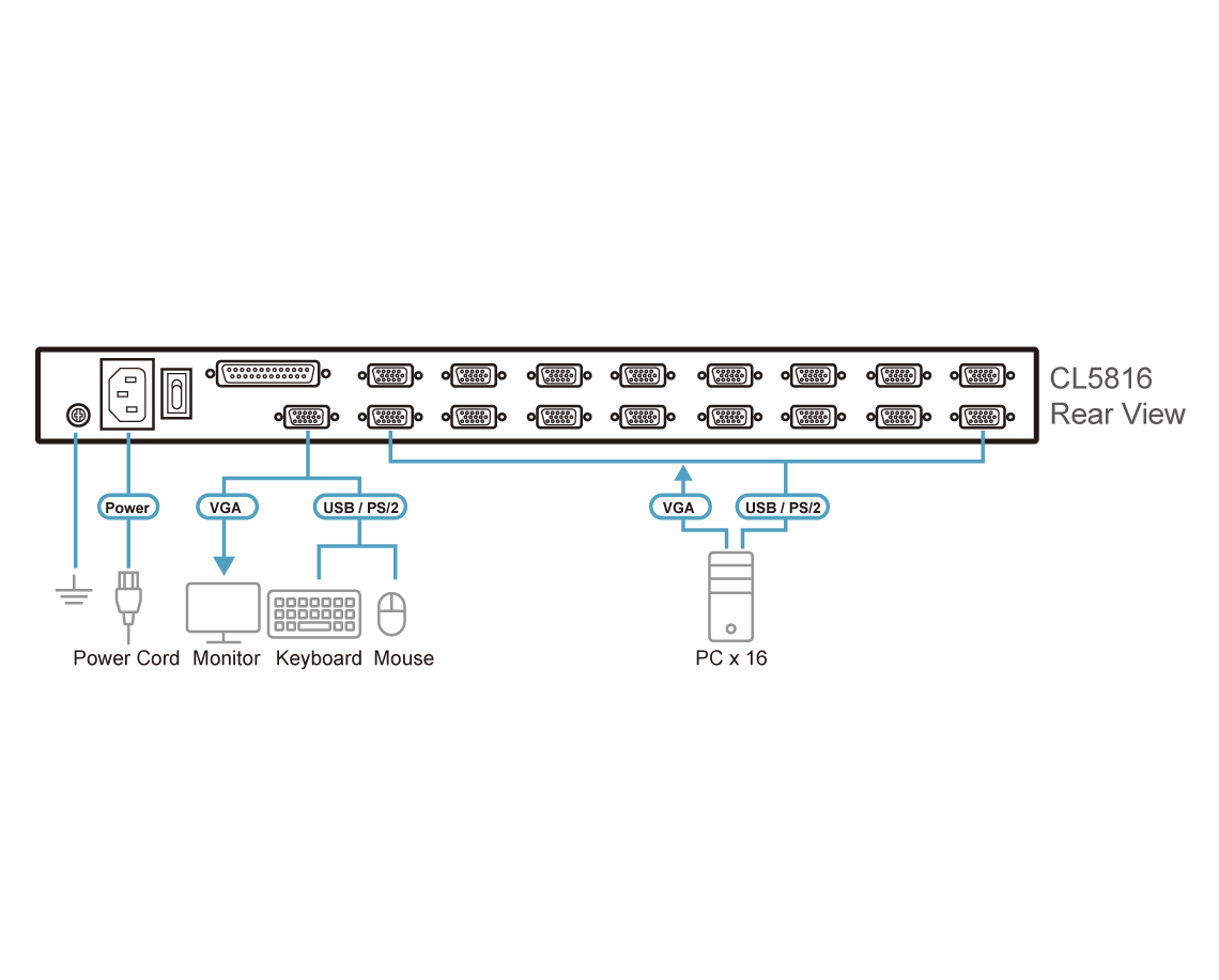 پشتیبانی از ۱۶ پورت PS/2-USB VGA