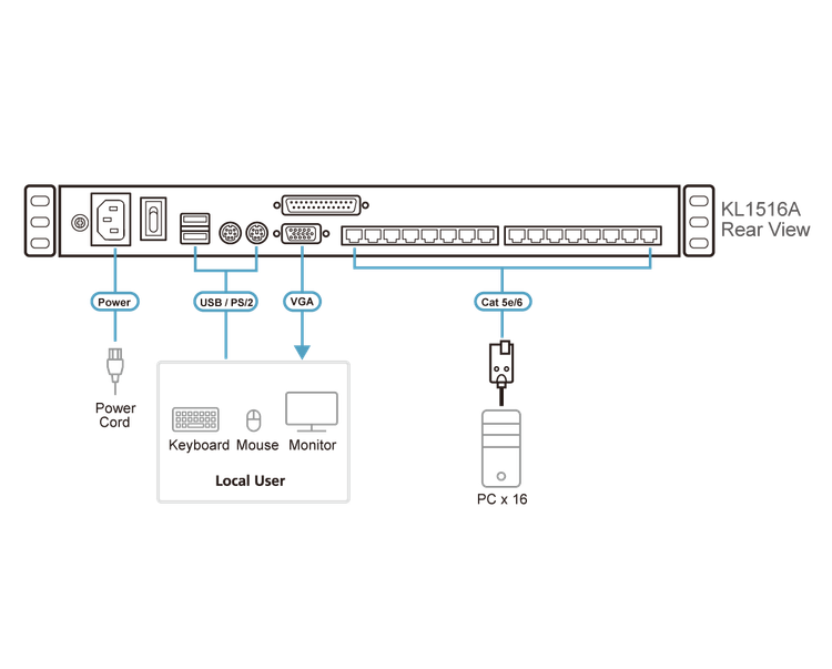 پشتیبانی از ۱۶ پورت KVM Cat 5