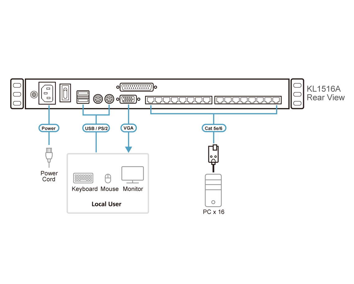 پشتیبانی از ۱۶ پورت KVM Cat 5