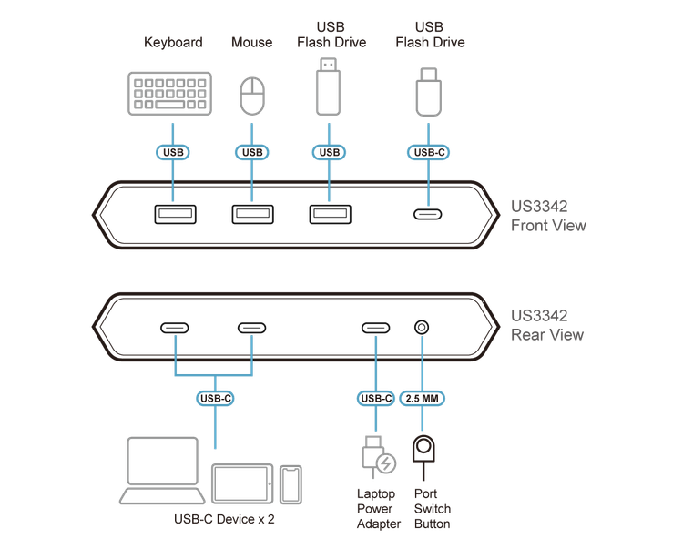 2-Port USB-C Gen 2 Sharing Switch with Power Pass-through