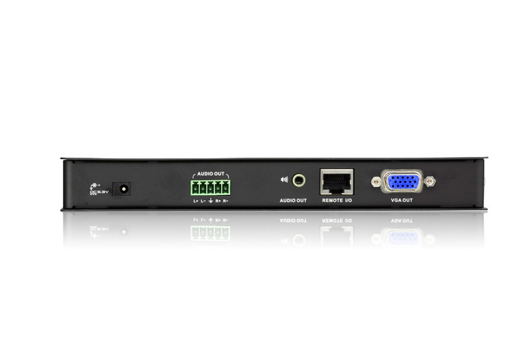 - VE500R محصولی از ATEN است که بهعنوان گیرنده سیستم VE500 (شامل VE500T فرستنده و VE500R گیرنده) عمل میکند و امکان انتقال همزمان تصویر VGA، صدا، و فرمان کنترلی (RS-232) از طریق کابل Cat 5e را فراهم میکند