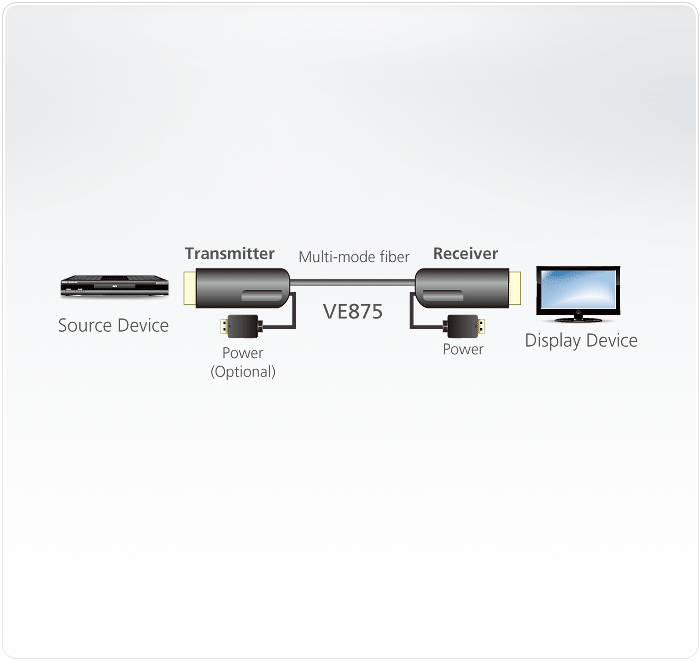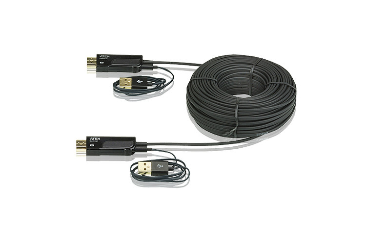 - ATEN VE875 یک کابل HDMI فعال نوری (Active Optical Cable) با طول 100 متر است که انتقال سیگنالهای ویدیویی تا رزولوشن 4K را با کیفیت بالا، بدون تداخل الکترومغناطیسی و تأخیر ارائه میدهد