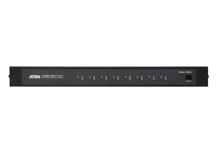 - VS0801A از ATEN یک راهحل کامل و قابلاعتماد برای نمایش ویدیو و صوت از ۸ منبع مختلف (مثل لپتاپها یا کامپیوترها) بر روی یک نمایشگر (مانیتور یا پروژکتور) است